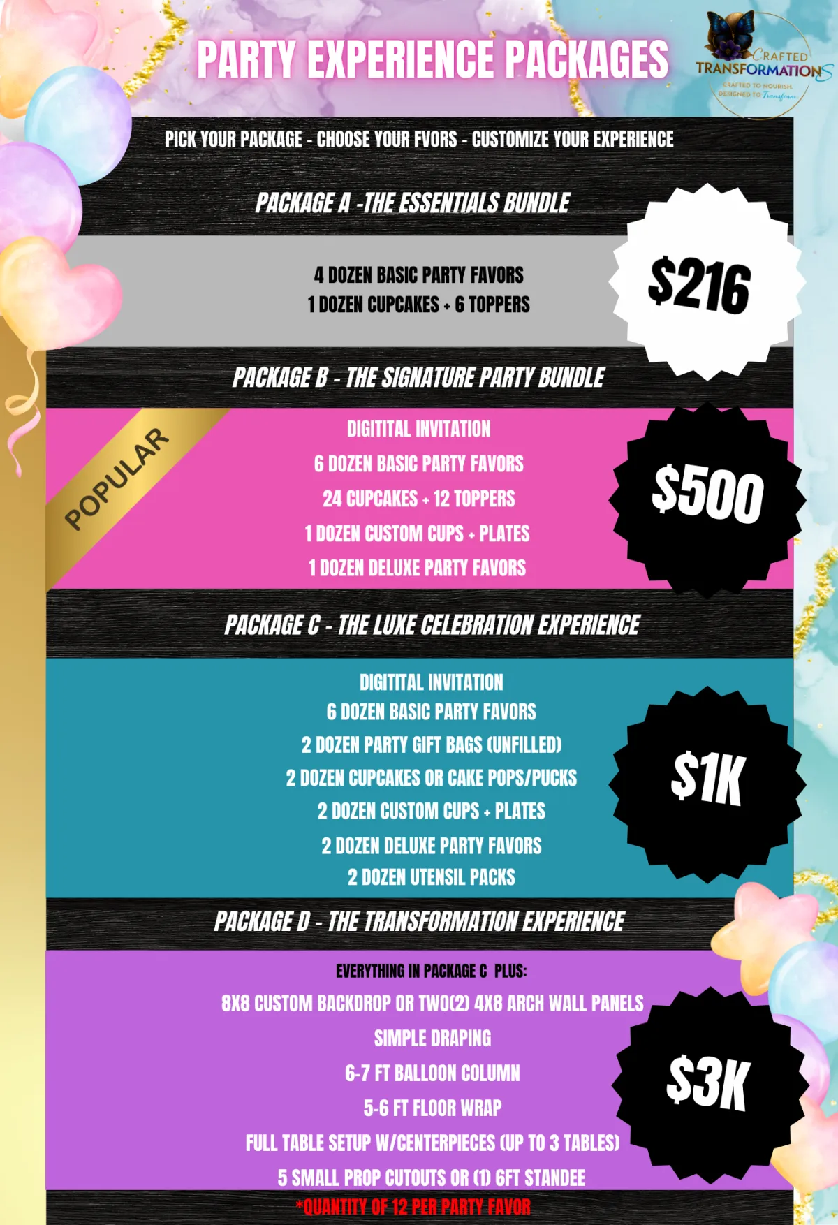 We offer a wide range of digital party planning templates, including banners, backdrops, floor wraps, and printable designs. All of our templates are designed to help you create a cohesive and stylish party atmosphere.